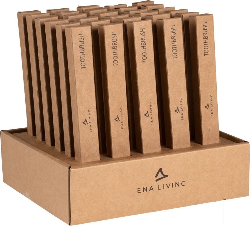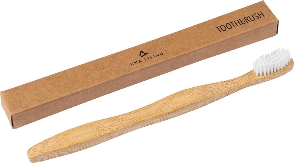 Szczoteczka od ENA Living wykonana jest z naturalnego bambusa i białego nylonu. Rezultatem jest zachwycająca szczoteczka do zębów wykonana z materiałów, które chronią środowisko, unikając używania plastiku. Ma lekki i elegancki wygląd, którego zdecydowanie nie należy ukrywać. W rzeczywistości byłby miłym akcentem w każdej łazience.