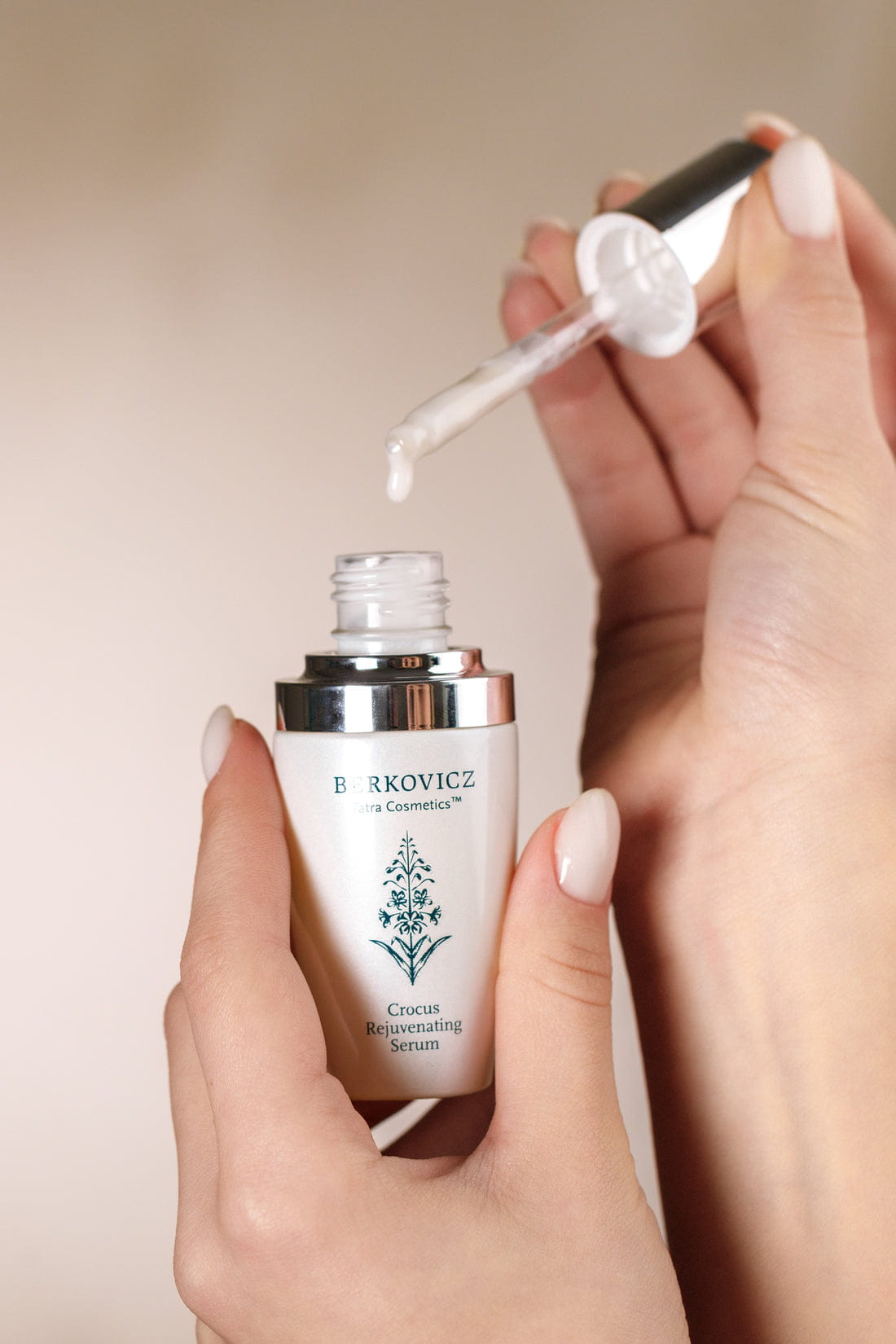 Krokusowe Serum Odmładzające to innowacyjny produkt o wielokierunkowym działaniu. Ma lekką, aksamitną konsystencję, która szybko się wchłania i dzięki skoncentrowanej formule przynosi zauważalne efekty już po 14. dniach stosowania. Idealnie przygotowuje skórę do aplikacji kolejnych produktów.