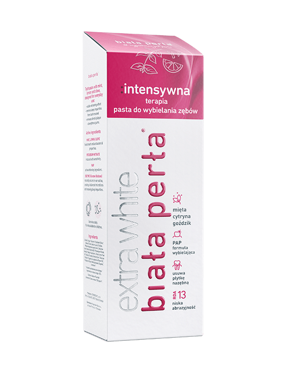Pasta do wybielania zębów Biała Perła INTENSYWNA TERAPIA PLUS to najmocniejsza pasta wybielająca do codziennego stosowania z serii Biała Perła.