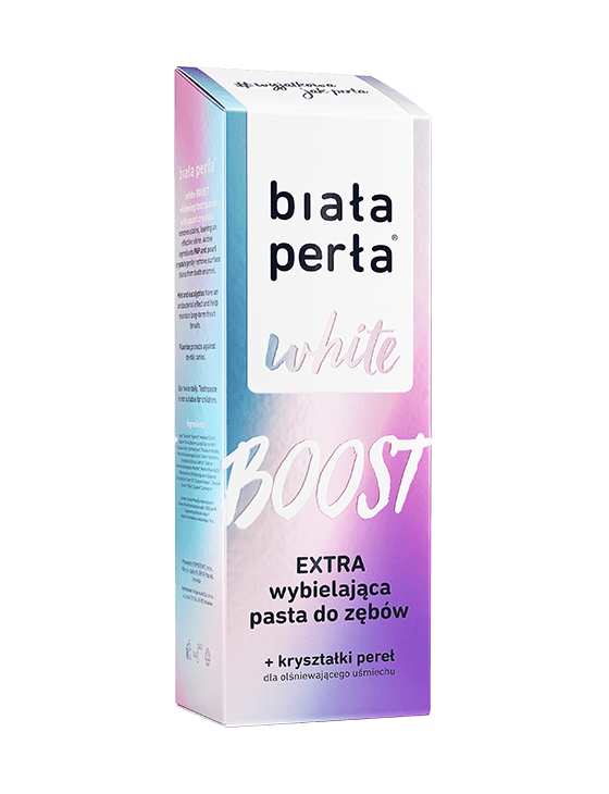 White boost wybiela plamy z powierzchni szkliwa zębów w sposób enzymatyczno-oksydacyjny, usuwa płytkę nazębną zapewnia kompleksową pielęgnację zębów i dziąseł oraz remineralizuje szkliwo zębów.