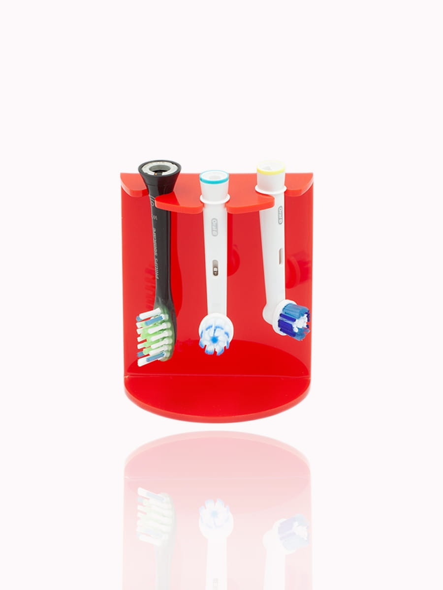 Zawieszone w uchwycie końcówki zawsze będą dobrze się wentylować i schnąć. Uniwersalne otwory pasują do większości najpopularniejszych marek szczoteczek elektrycznych. Używanie stojaka gwarantuje porządek i przede wszystkim w pełni higieniczne używanie szczoteczki elektrycznej.