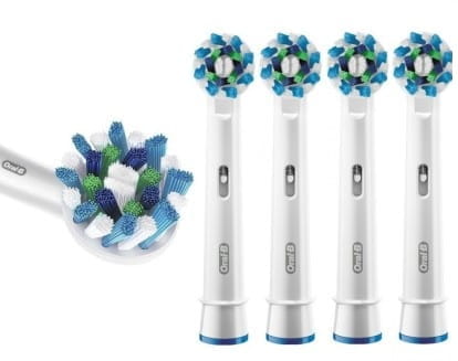 CrossAction to jedna z najbardziej zaawansowanych końcówek wymiennych do szczoteczek elektrycznych Oral-B, wyposażona w włókna ustawione pod kątem, które usuwają nawet do 100% więcej płytki nazębnej niż zwykła szczoteczka manualna. Model końcówki Oral-B CrossAction oparto na specjalnie zaprojektowanych włóknach ułożonych w taki sposób, by obejmowały jak największą powierzchnię zębów. Włókna sięgają głęboko między zęby, skutecznie usuwając płytkę nazębną i zapewniając uczucie świeżości oraz dokładniejsze mycie całej jamy ustnej niż w przypadku użycia zwykłej szczoteczki manualnej. Końcówka pasuje do wszystkich szczoteczek oscylacyjno-rotacyjnych.