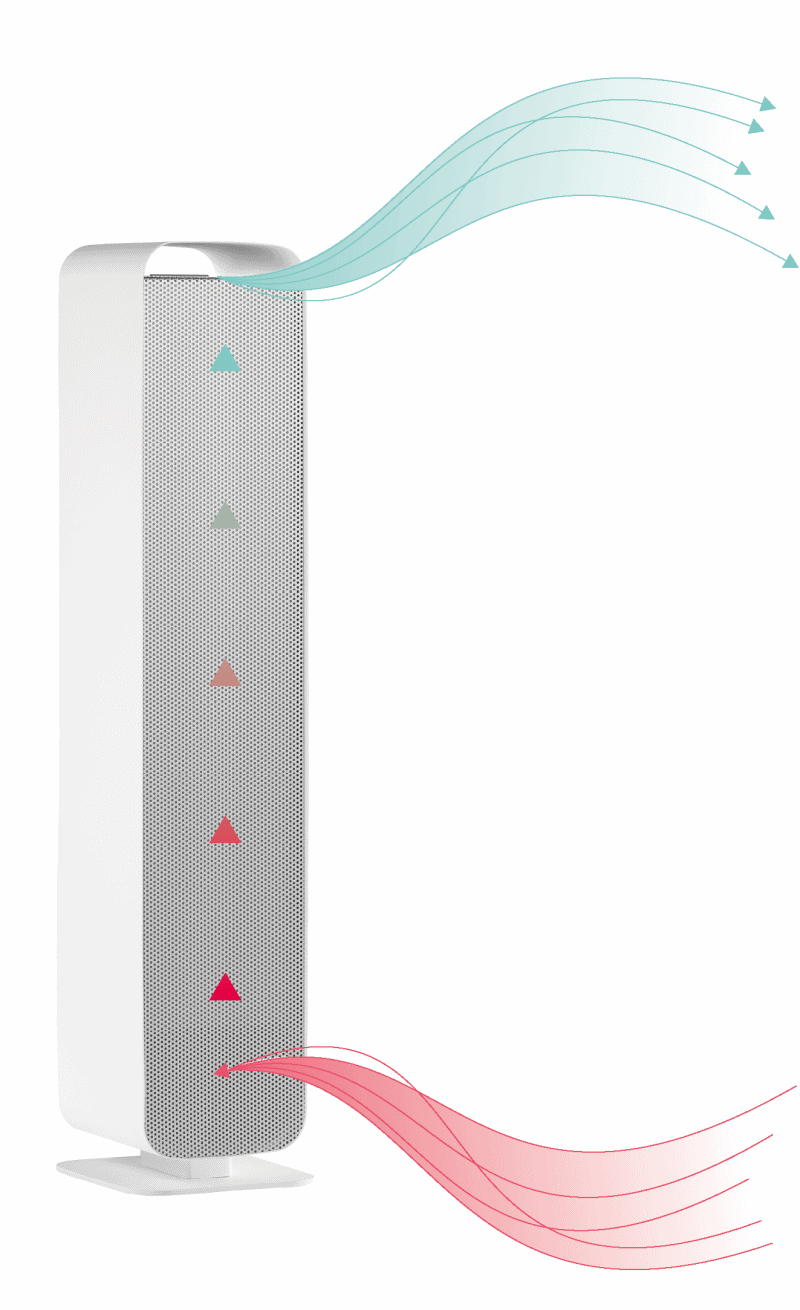 Dzięki wymuszonej cyrkulacji, powietrze przechodzi przez wnętrze lampy, gdzie zostaje naświetlone i zdezynfekowane, a następnie wyparte na zewnątrz.