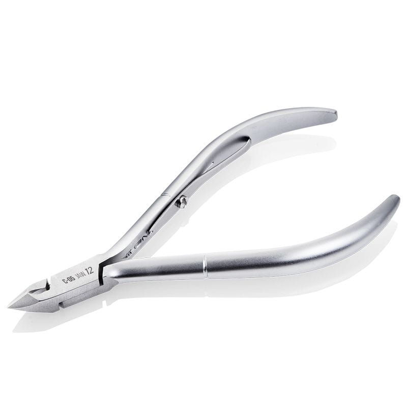 Profesjonalne cążki do skórek ze stali nierdzewnej chirurgicznej z jednostronną sprężyną, przeznaczone do precyzyjnego wycinania skórek. Dostępne w rozmiarach szczęk 12 (5 mm), 14 (6 mm), 16 (7 mm). Dzięki metodzie łączenia szczęk Lap Joint (która minimalizuje zużywanie się materiału i możliwość powstawania luzów w porównaniu z innymi metodami łączenia) cążki zapewniają idealną pracę przez długi czas. Cążki posiadają specjalnie wyprofilowaną rękojeść (typ klasyczny), która zapewnia wysoką precyzję, wygodę i komfort pracy.
