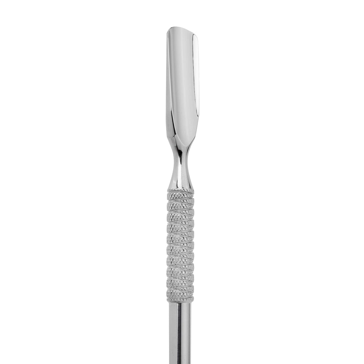 • Zaokrąglona łopatka doskonale sprawdzi się do odsuwania skórek. Jej wymiary pozwolą na dotarcie również do trudniej dostępnych miejsc. Profilowana końcówka jest oszlifowana w taki sposób, by skutecznie usuwać skórki, jednocześnie nie uszkadzając płytki paznokcia.