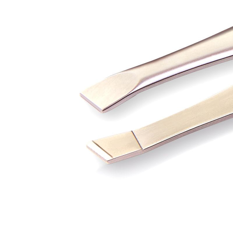 Pęseta o skośnym kształcie zakończenia, jest niezastąpiona przy zabiegach usuwania włosków lub innych zabiegach. Specjalnie wyprofilowana końcówka zapewnia idealne schodzenie się końcówek dzięki temu praca tym narzędziem staje się łatwa i przyjemna. Pęseta zapewnia wyrywanie włosów w całości (razem z cebulką).