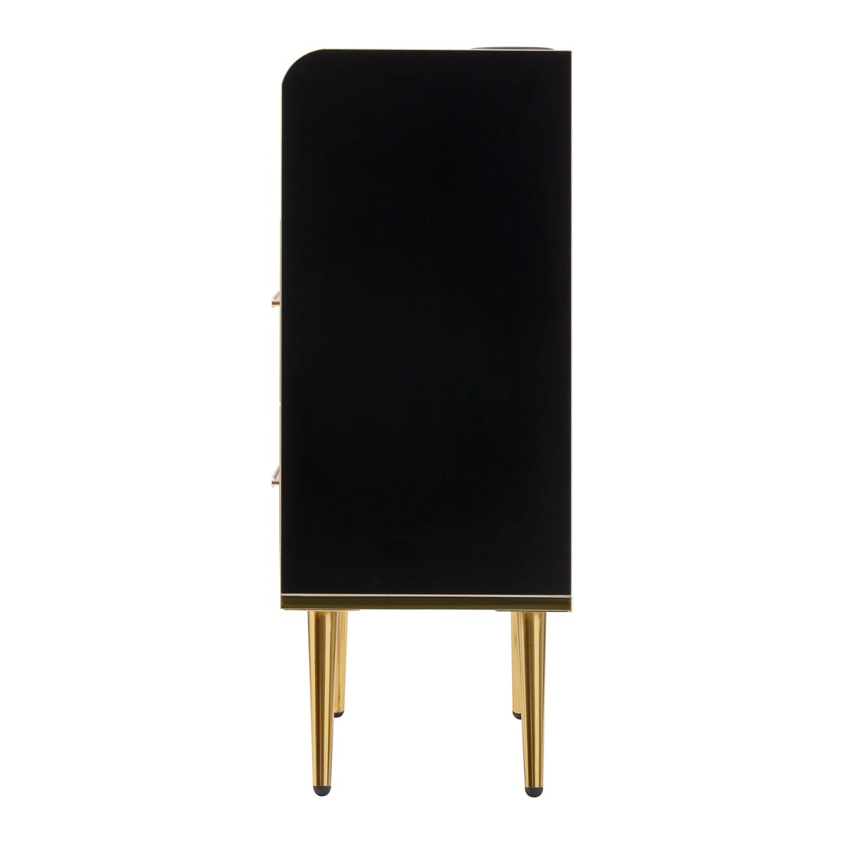 Nowoczesna, czarna konstrukcja z matowym wykończeniem sprawia, że pomocnik przyciąga wzrok i idealnie pasuje do eleganckich, profesjonalnych wnętrz. Polerowane metalowe elementy w odcieniach złota oraz solidna konstrukcja z drewnianych płyt w odcieniach czerni podkreślają elegancję wnętrza. Złote nóżki nie tylko dodają klasy, ale także ułatwiają utrzymanie czystości pod meblem, co jest istotne w każdym profesjonalnym salonie.