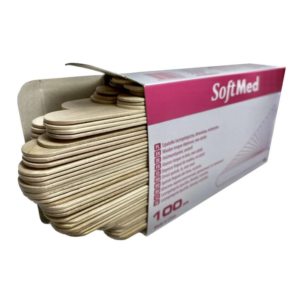Szpatułki laryngologiczne niejałowe SoftMed, wykonane z drewna brzozowego