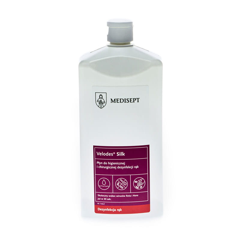 Velodes® Silk to alkoholowy, gotowy do użycia produkt przeznaczony do higienicznej i chirurgicznej dezynfekcji rąk w obszarze medycznym, sektorze żywnościowym, w warunkach przemysłowych i domowych oraz w zakładach użyteczności publicznej, a także do dezynfekcji powierzchni mających i niemających kontaktu z żywnością.